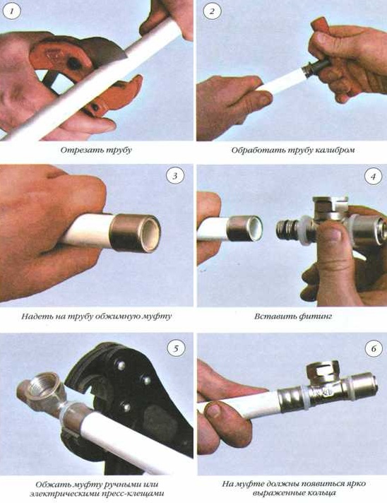 L'installation de tuyaux métal-plastique avec raccords à sertir est réalisée comme suit: