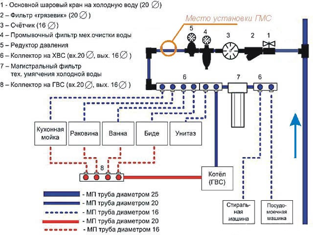 Avec lui, vous pouvez déterminer avec précision l'emplacement optimal pour chaque appareil de plomberie, sélectionner les pièces et éléments nécessaires des pipelines et déterminer leur débit.