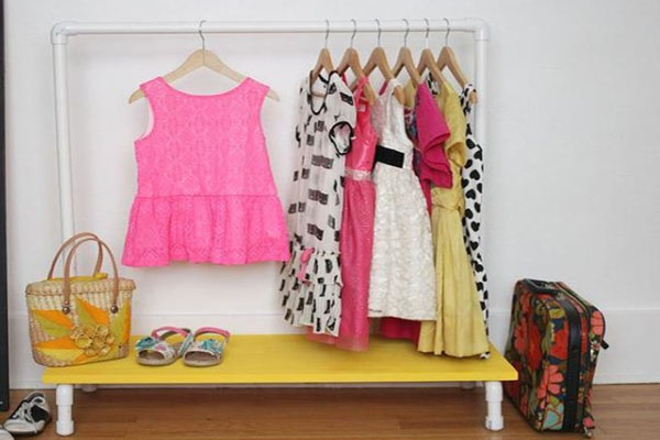 Si vous avez besoin d'un cintre fonctionnel pour les robes / chemises, vous devriez opter pour une conception en forme de U dans laquelle les supports verticaux sont reliés par des cavaliers horizontaux. Afin d'éviter que la barre supérieure ne s'affaisse sous le poids des vêtements, une barre métallique peut y être insérée.