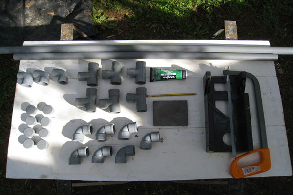 Avant de procéder à la construction du cintre, il est nécessaire de s'approvisionner en outils et matériaux nécessaires au travail. Dans tous les cas, vous devrez acheter tuyaux et raccords en polypropylène taille appropriée, peinture, si vous souhaitez rendre le cintre original.