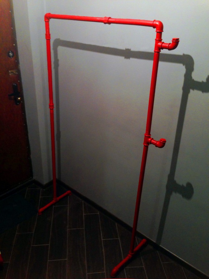 Une notion intéressante. Oui, j'aurais fait un tel cintre dans mon appartement à moins qu'à titre temporaire, tout de même, l'esthétique de ce design ne suffit pas, à mon goût. Mais pour une maison d'été ou un garage, une très bonne solution est fonctionnelle et facile à assembler, à partir de matériaux peu coûteux.La seule chose, comme écrit dans le matériau, un coupe-tube est très souhaitable, et tout le monde n'a pas un tel outil.