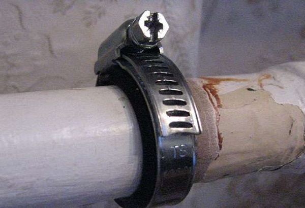 J'utilise généralement des pinces en acier avec des joints en caoutchouc. Lorsque vous pouvez utiliser une double pince, je fais toujours cela - cela a l'air très soigné, les gens sont heureux. De vos propres mains, si soudainement les circonstances étaient d'une manière intéressante, la pince est parfaitement faite de ruban métallique perforé. Coupez simplement la pièce dont vous avez besoin, saisissez le tuyau et serrez-le avec un boulon et un écrou à travers la perforation sur les queues libres. Oui, grossier et inesthétique, mais l'option fonctionne tout à fait. Le joint en caoutchouc n'est organisé qu'à partir de quelque chose. Donc, une fois que j'ai refermé d'urgence la fistule formée sur le tuyau avec de l'eau chaude. L'eau coulait à travers un tuyau d'une petite fissure. Ce qui est surprenant, ce collier avec une bande élastique, en fin de compte, a duré plus d'un an, et l'eau n'a pas coulé.