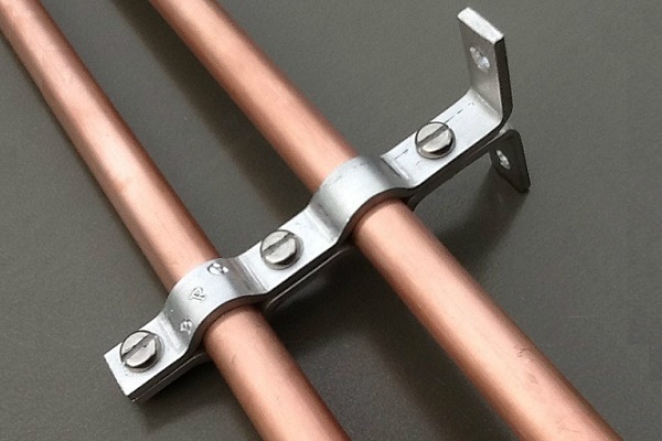 Pour la fixation de tuyaux étroitement espacés, les fabricants proposent des colliers doubles. En vente, vous pouvez même trouver des pinces équipées d'éléments de mise à la terre. Leur conception fournit des tiges avec des extrémités pointues, conçues pour créer un contact électrique fiable du tuyau monté avec des boucles de terre.