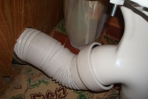 Astuce: pour faciliter la mise en place du tuyau ondulé à la sortie, il est nécessaire de frotter son extrémité le long des parois intérieures avec du savon liquide.