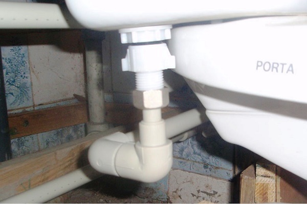 - Alimentation en eau du réservoir et raccordement de la sortie à l'égout. Un tuyau rigide est utilisé pour l'alimentation en eau et une ondulation est utilisée pour connecter la sortie.