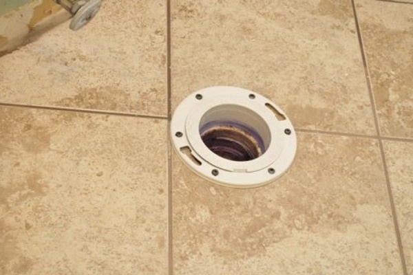 - La cuvette des toilettes est poussée aussi étroitement que possible vers le trou de vidange et il est vérifié si la sortie coïncide avec la prise d'égout.