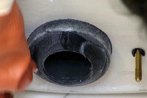- Une rondelle d'étanchéité en caoutchouc est projetée sur le mécanisme. L'appareil est immergé dans le réservoir et fixé avec un écrou.