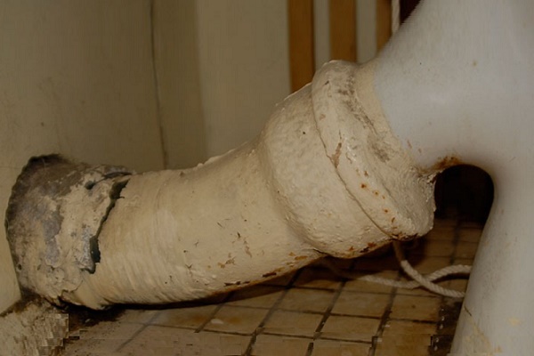 Dans les maisons anciennes, les prunes sur les tuyaux d'égout sont souvent fixées par du plâtre de ciment. Il est plus facile de renverser une solution séchée avec un ciseau en la piquant à plusieurs endroits. Lire les instructions détaillées pour démonter la vieille cuvette des toilettes plus loin.