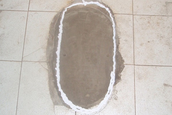 Pour assurer l'ajustement le plus proche de la semelle de toilette au sol, du silicone est appliqué sur le comptoir d'installation prévu. La toilette elle-même est ensuite remise à sa place d'origine, guidée par le contour prévu.