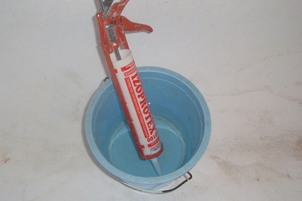 De la gorge de la sortie d'égout, retirez le couvercle en bois et retirez le bouchon de chiffon. La cloche est nettoyée des accumulations de saleté, de rouille et de solution résiduelle. Une extrémité du brassard est insérée dans le col de l'égout. La couture est scellée, couvrant en 2-3 couches avec la composition. L'autre extrémité du brassard est attachée à la libération.