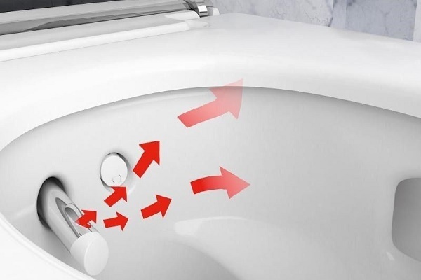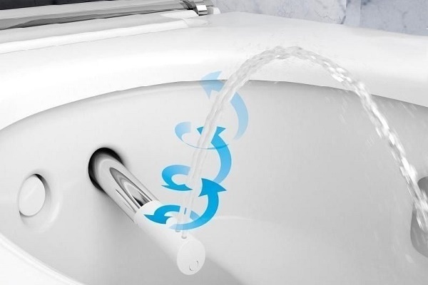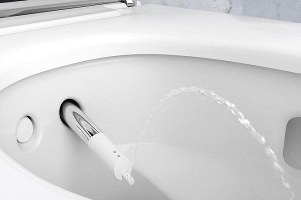 Après avoir appuyé sur le bouton, la buse avec buses s'étend dans le bol et commence à pulvériser les jets.Et après la fin des procédures, cette pointe est retirée en arrière, préalablement nettoyée de la saleté en mode automatique.