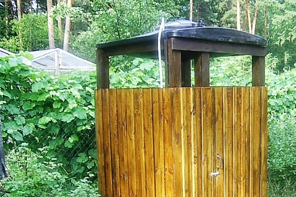 Mais les résidents d'été et les propriétaires de biens immobiliers privés ont rapidement trouvé l'utilisation de conteneurs en vrac, l'utilisant sous une douche de stockage d'eau. Au fait, il est maintenant possible de trouver des barils de même capacité en plastique.