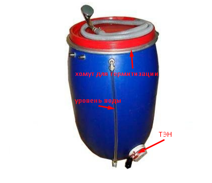 Presque tous les modèles industriels de réservoirs de douche d'été sont équipés d'ouvertures pour l'installation de radiateurs électriques. Sur les conteneurs improvisés, le site d'installation du chauffage est également facile à préparer.