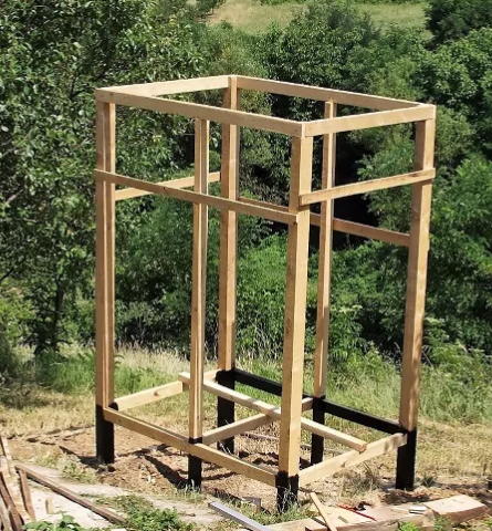Après avoir terminé toutes les opérations de fabrication et d'équipement du réservoir de stockage avec des raccords, procéder à son installation au-dessus de la cabine de douche. Un endroit traditionnel pour l'installation d'un réservoir sous une douche extérieure est les poutres supérieures du cadre de douche.