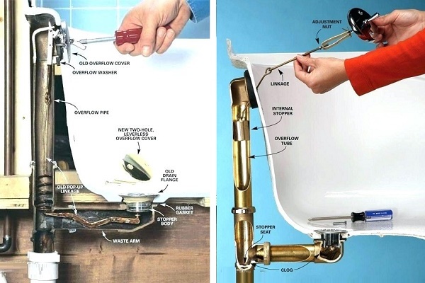 Souvent, pour lutter contre le colmatage, il suffit d'effectuer des manipulations simples, comme dans l'exemple du retrait d'un bouchon d'un siphon à débordement semi-automatique: