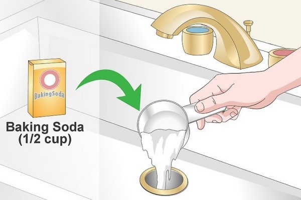 - ½ paquets de bicarbonate de soude sont versés dans le trou de vidange.