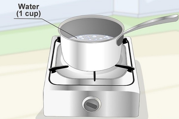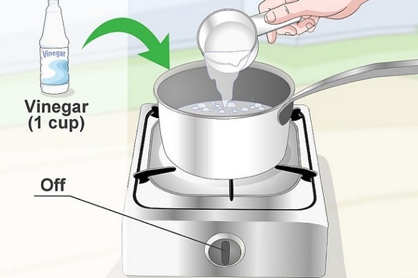 - Après 10-15 minutes, lorsque la poudre est compactée, un demi-verre de vinaigre est versé dans le trou.