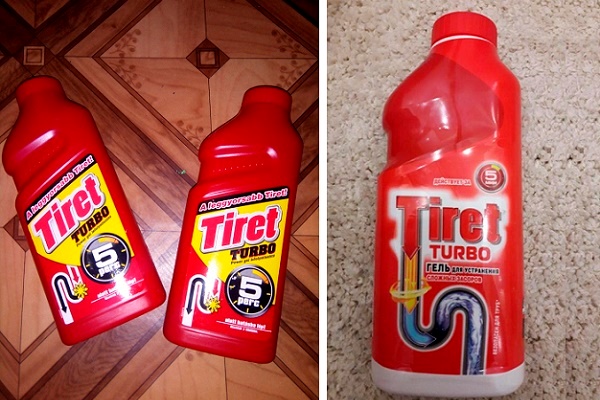 - «Tiret» - une composition de type gel qui élimine rapidement et efficacement tout type de blocage. Il s'adapte aux tuyaux en métal et en plastique.