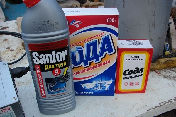 Un remède populaire éprouvé permettra d'éliminer le problème. Un bon effet est donné par une solution de carbonate de sodium avec du vinaigre. La soude, réagissant avec l'acide, produit une grande quantité de dioxyde de carbone. Dans un espace confiné, il pousse la purée.