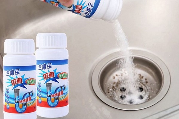 - Bagi Pothan, une préparation à base de soude caustique, élimine efficacement même les blocages les plus sévères, y compris les débris alimentaires, les cheveux et le calcaire. Son seul inconvénient est une forte odeur chimique.