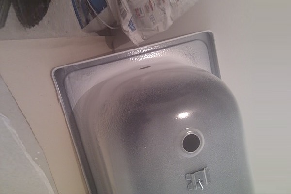 Mais ce défaut est facilement éliminé en appliquant des joints en caoutchouc. Aide à résoudre le problème avec succès et à appliquer une couche de mousse de montage sur les parois du corps du bol et à fermer la structure avec un panneau décoratif.