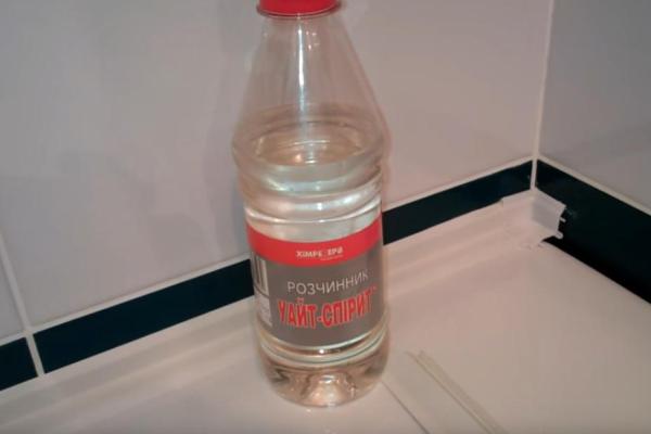- Nous traitons le bord de la salle de bain et une partie du mur sur toute la longueur avec un solvant, et nous le séchons.