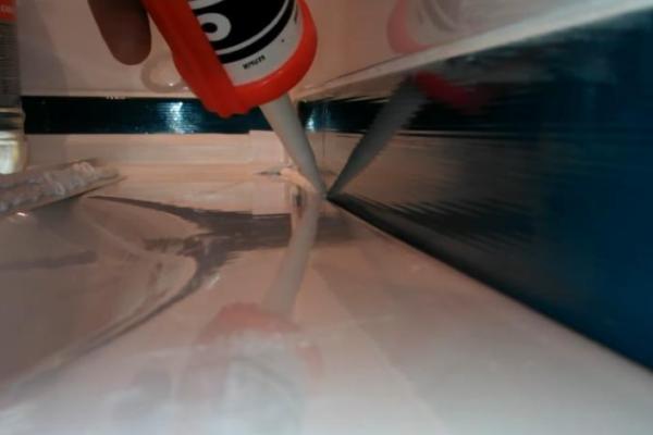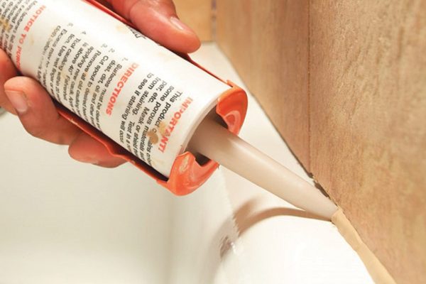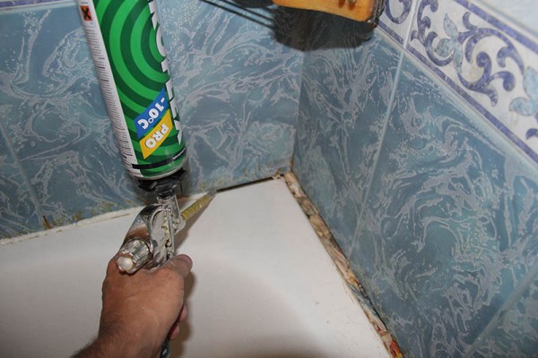 L'utilisation de scellant est un moyen peu coûteux et facile. La seule condition de son utilisation est la taille de l'espace, qui ne doit pas dépasser 3 mm. Un produit épais placé dans un tube peut avoir différentes nuances, mais la même couleur est préférable pour masquer un bain blanc. La prise transparente n'est pas recommandée.