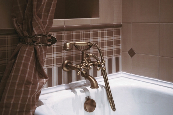 Cette méthode est souvent utilisée lorsque la salle de bain est confrontée à des carreaux de collection coûteux, à côté desquels les coins en plastique semblent inappropriés. La seule difficulté est de choisir la bonne taille pour les pièces en céramique. Il est nécessaire de déterminer à l'avance la hauteur du bain et de tout calculer pour que les carreaux n'aient pas à être coupés.
