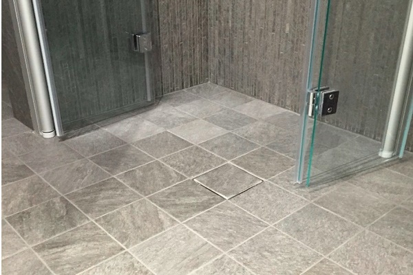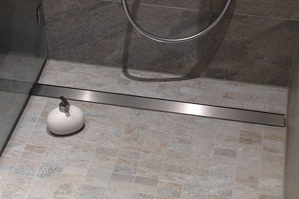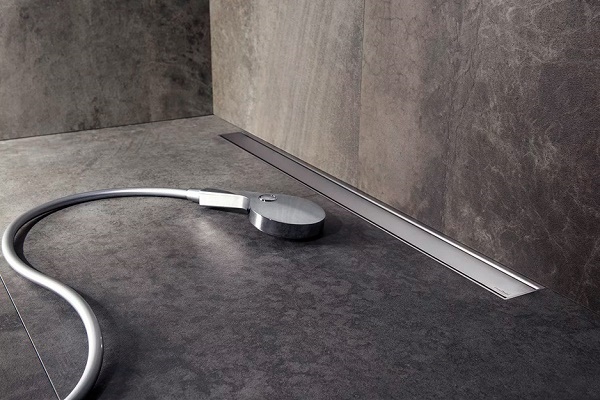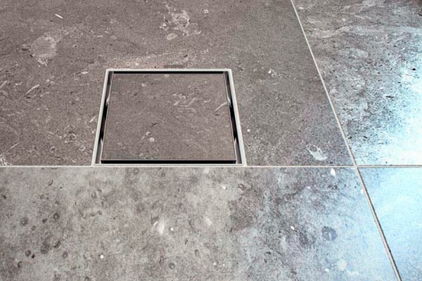 Souvent, l'emplacement du drain est choisi, en se concentrant sur la forme du revêtement décoratif de l'échelle. Par exemple, un carré est installé au milieu et un linéaire est installé sur le côté, le long du mur.