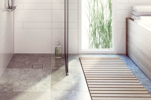 Le carrelage doit être antidérapant et idéalement le même que dans toute la salle de bain. Pour effectuer des calculs précis, vous devez utiliser les recommandations des fabricants.