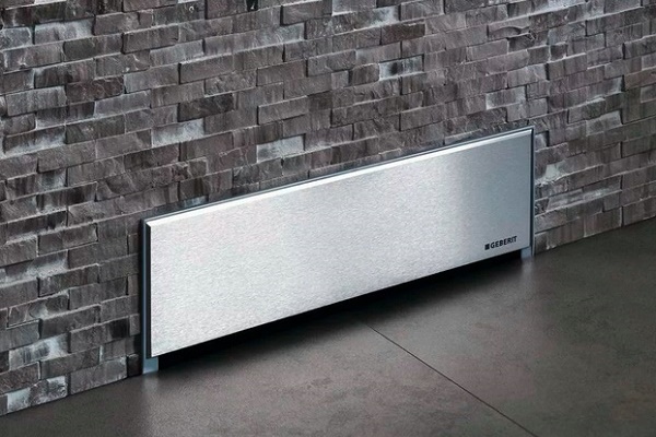 Dans la série de constructions linéaires murales, il existe des options améliorées, complétées par des dispositifs de projection d'eau sur le mur.Un des exemples typiques est la modification de l'échelle de la célèbre société Geberit, spécialisée dans la production de plomberie avec installations.