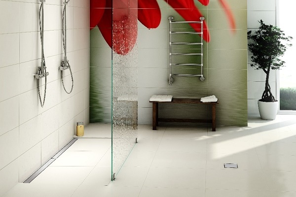 Les paniers de drainage pour les passerelles sont le type le plus courant, ce qui s'explique facilement par la possibilité d'installer un drain à n'importe quel endroit pratique sur le sol: au centre, sur le côté, dans le coin. Dans le sens de la collecte ponctuelle de l'eau dans la pièce ou dans le bac à douche, une pente doit être prévue pour l'évacuation de l'eau par gravité.