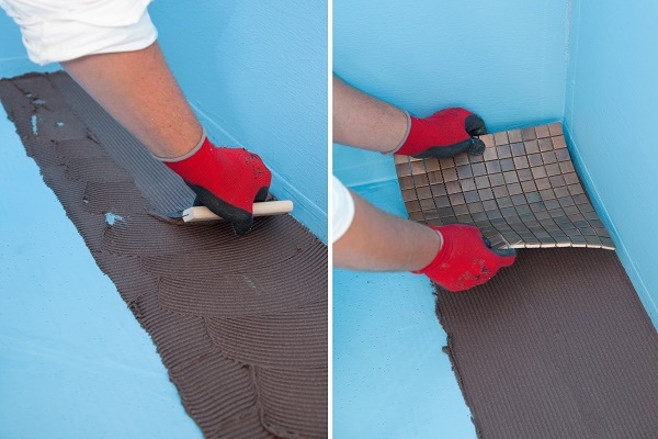 Lorsque le revêtement est complètement sec, vous pouvez commencer à imperméabiliser et à installer des carreaux de céramique ou des mosaïques.
