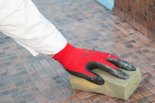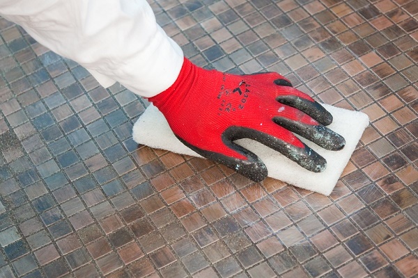 Lorsque les travaux de pose de carreaux sont terminés, il est nécessaire de traiter les joints. Pour ce faire, nous les nettoyons d'abord de la colle, puis le coulis (jointoiement) avec une spatule en caoutchouc.