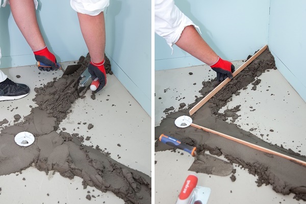 Lors de l'installation de la chape d'une manière ou d'une autre, l'élévation de la zone de douche au-dessus du reste du sol se révélera. Sauf si vous souhaitez soulever le sol de toute la salle de bain au niveau de l'échelle.