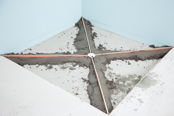 En conséquence, lors du montage à la fois d'un appareil mural ou d'un appareil installé dans un autre endroit, il est nécessaire d'agencer l'inclinaison de la surface du sol dans une direction. Une pente vers l'un des murs est beaucoup plus facile à organiser que la construction de deux plans inclinés avec une diminution au centre.
