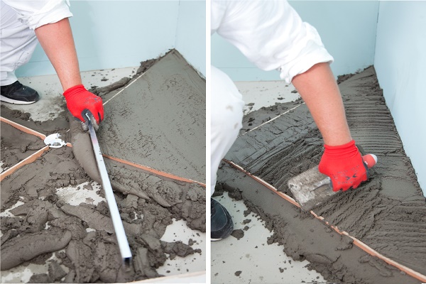 L'inconvénient des mortiers de ciment est qu'ils ont besoin de temps pour sécher complètement. Nous attendons que la chape mûrisse enfin (le temps de séchage approximatif peut être trouvé dans les instructions), nous mettons une autre couche d'imperméabilisation, puis nous exécutons la chape finale.