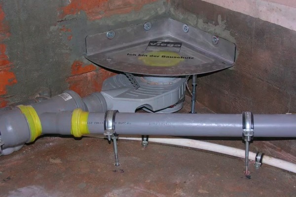 Comme exemple d'installation de l'échelle, nous prenons un dispositif ponctuel avec une sortie horizontale, qui est plus facile à connecter à la conduite d'égout. L'emplacement d'installation n'a pas beaucoup d'importance, si vous le souhaitez, vous pouvez le faire au centre, dans le coin ou près du mur.