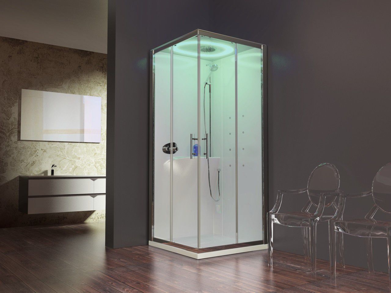 - lampes de chromothérapie - la lumière correctement répartie augmente l'effet relaxant de l'hydromassage et d'autres sensations agréables dans la salle de bain.
