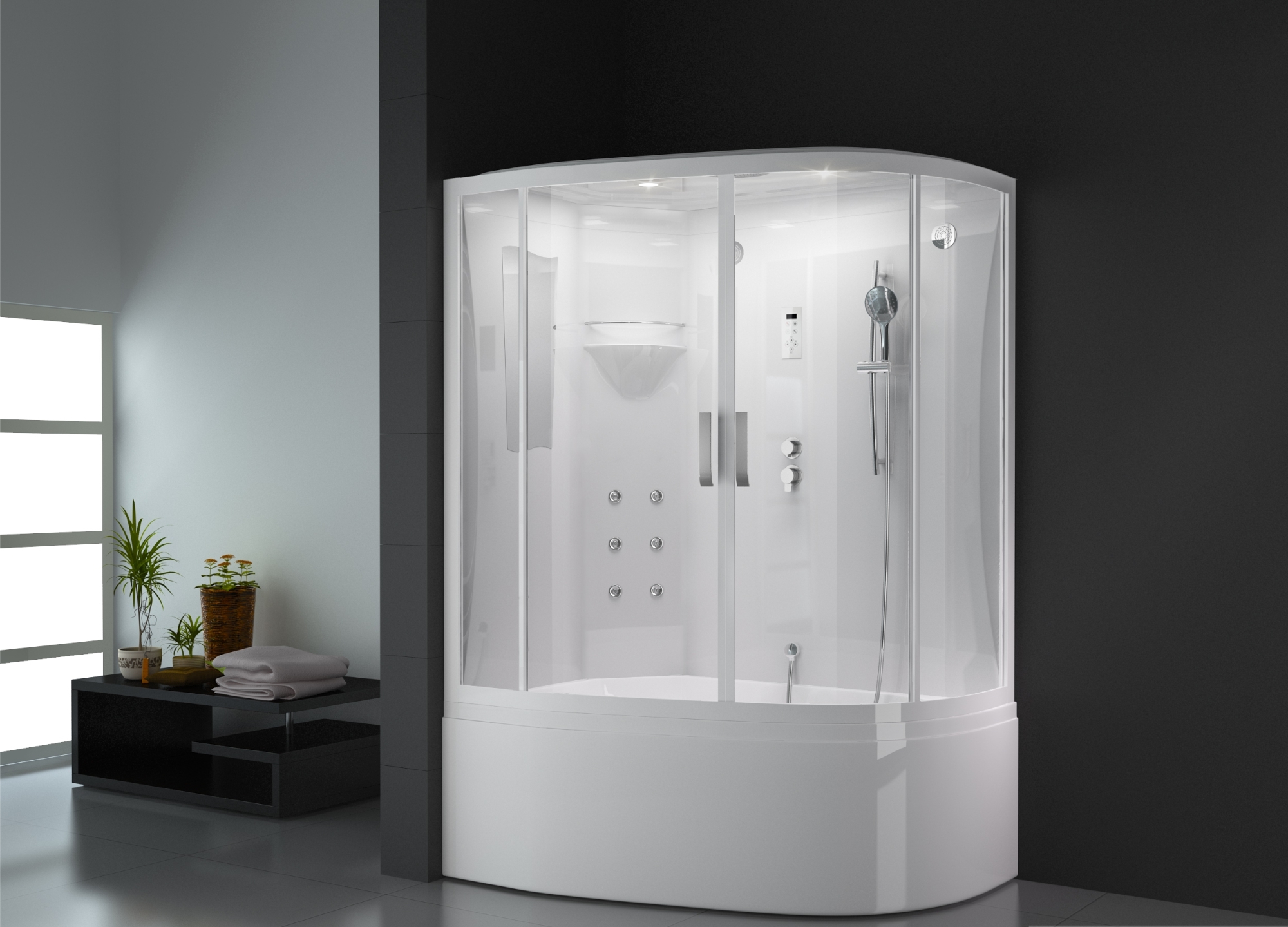 Tout équipement supplémentaire peut être installé dans la boîte scellée de la cabine de douche de type angulaire, et la cuvette intégrée de la baignoire rendra le lavage et le plaisir de l'hydromassage et de l'aromathérapie encore plus agréables.