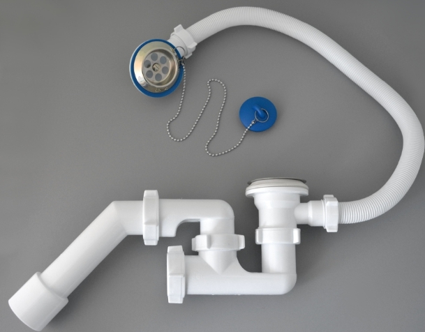 Ensuite, la partie du siphon qui se connecte au tuyau d'égout est collectée. Tous les joints sont scellés. Lors de la collecte du siphon, essayez de ne pas trop serrer les raccords filetés, car cela peut entraîner une déformation et la rupture des pièces en plastique.