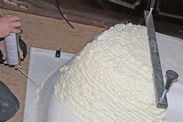L'espace entre la salle de bain et les briques est soufflé avec de la mousse de construction. Pour assurer une pression optimale sur la mousse, il est conseillé de remplir le bain d'eau.