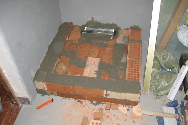 Parfois, la hauteur des jambes d'un tel produit ne suffit pas pour placer un siphon de vidange en dessous. Dans ce cas, vous devez préparer un parapet spécial.