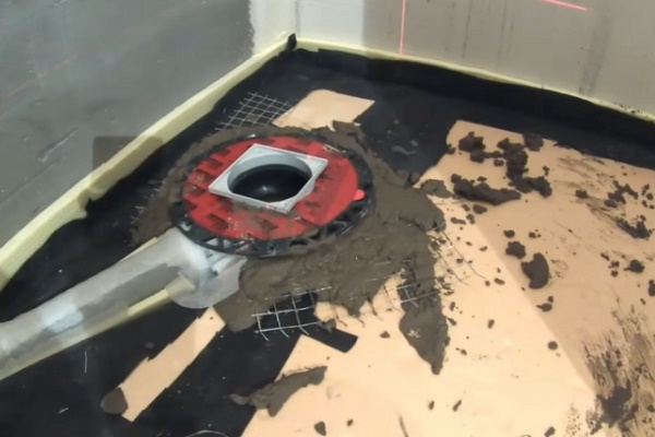 Il est important que la chape ait une pente minimale vers le drain, afin que l'eau ne s'accumule pas après avoir utilisé la douche. Après séchage, appliquer l'avant-dernière couche d'imperméabilisation.