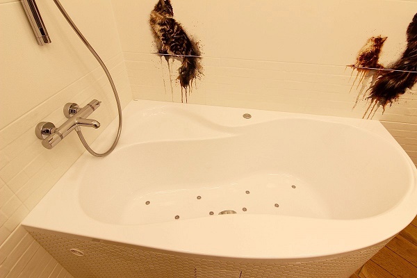 Si nous faisons nous-mêmes des carreaux de sol sous le bain, alors ils doivent être posés par la méthode du pressage pour éviter la formation de vides en dessous. Sinon, la tuile peut se fissurer pendant le fonctionnement du bain.