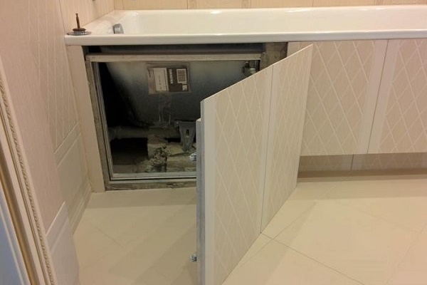 L'espace entre la salle de bain et le sol peut ne pas être couvert si la surface extérieure du modèle a un aspect attrayant. Mais le plus souvent, nous essayons toujours de combler cet écart.