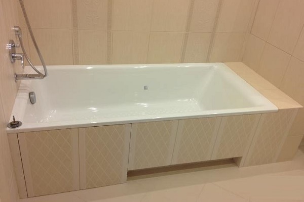 - Acrylique Une option simple et peu coûteuse, plus facile et plus logique à remplacer qu'à réparer. Il ne sonne pas lors de la prise d'eau, il retient la chaleur, mais ne dure pas assez longtemps et ne plaît pas à la stabilité. Avec l'installation sans difficulté, vous pouvez la gérer vous-même.