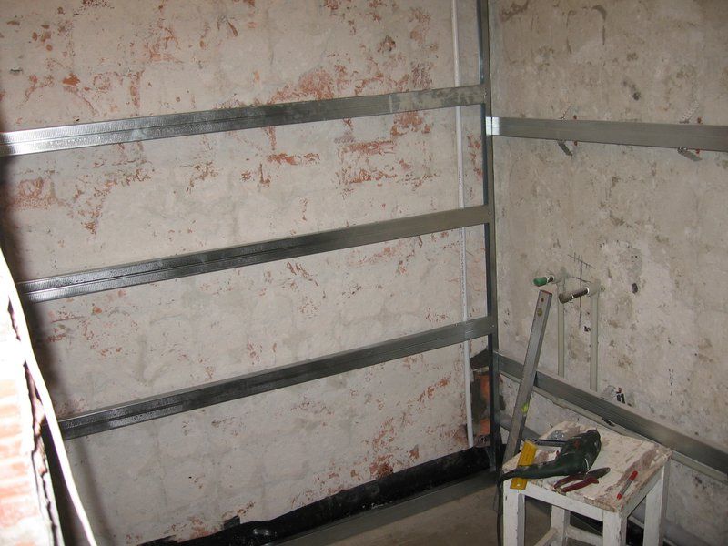 Le nivellement direct des murs peut être traité de manière plus superficielle, ne remplissant que les cavités évidentes avec du mastic et aiguisant légèrement les saillies. Il est nécessaire de définir le plan idéal de la future surface de revêtement au stade de l'installation de la caisse: chacun de ses éléments est fixé au mur avec des chevilles ou des vis autotaraudeuses après le montage préalable des pièces à l'aide d'un niveau.