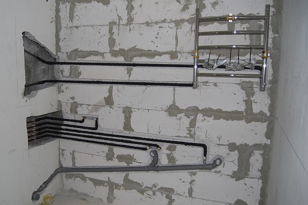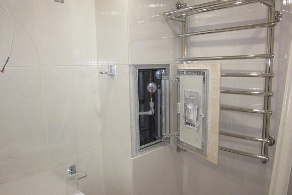 Il est conseillé d'approfondir les tuyaux dans le mur ou se cacher sous les garnitures décoratives. C'est un processus assez long, mais le résultat final semble beaucoup plus avantageux. Pour un accès libre à la contremarche, il est recommandé de réaliser une fenêtre en plastique spéciale.