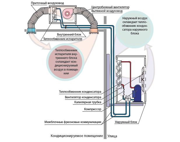 Fonctionnellement, ce type effectue les actions suivantes: refroidissement, chauffage, épuration des flux d'air.